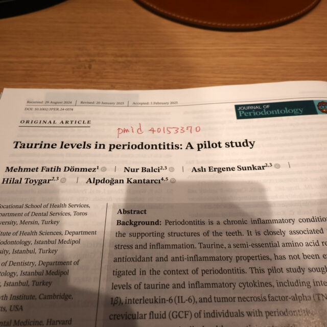 『歯周炎におけるタウリンレベル』についてのパイロット・スタディー。 今朝届いたJ…