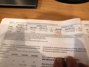 昨日届いたJCP1月号より。Limosilactobacillus reuteriをプロバイオティクスとして内服しながらSRPすると歯周病の指標や糖尿病の指標が3か月後、6か月後にどうなるかを調べたスペインからのRCT。結果、PD値には有意差がなかったが、6か月後のHbA1cには有意な差(0.4  P=0.035)が認められた(3か月後では有意差なし)。細菌叢には差がないので、どう解釈するべきなのだろう?