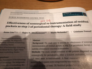 今朝届いたJOPより。『非外科的再治療の残存ポケットへの効果』に関するイエテボリ大学からの報告。