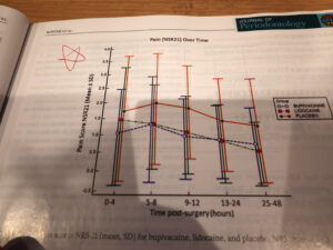 今朝届いたJOPより。30年ほど前にボストンでフラップオペの直後に長時間作用性のマーカイン(ブピバカイン)を追加しているのを見た。本報告ではリドカイン、生理食塩水(プラセボ)と比較して術後のコントロールに役立ったのかを検証している。結果、どちらもプラセボより効果があったが、ブピバカインがリドカインより優れているわけではなかった。